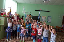Бәйрәм көне уңаеннан бүген бакчабызда күңел ачу чарасы уздырдык. Балалар ике командага бүленде. "Батырлар" һәм "Бөркетләр" исемен командаларга балалар үзләре сайлады. Менә шулай итеп алар көч сынаштылар.