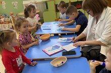 Бүген безнең бакчабызга Евлаштау авылы китапханәчесе кунакка килде. Ул балаларны бик кызыклы әкиятләр, хикәяләр белән таныштырды. Ахырдан шул әкият темасы буенча бергәләп рәсем ясадык.