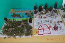 Иртәнге аштан соң җыелышып якындагы урманга экскурсиягә киттек. Башта балалар урмандагы матурлыкка хозурланып йөрделәр, аннары күп итеп табигый материаллар җыйдылар. Бераз ял итеп алгач, хәрәкәтле уеннар башланды. Балаларга аеруча "Аучы" уены ошады. Урманнан кайткач, үзләре җыйган материаллардан күргәзмә оештырдык.