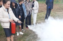 Учащиеся вспомнили правила пользования огнетушителем и как правильно надевать и снимать противогаз. В конце урока посмотрели презентацию по обеспечению безопасности и правилах поведения при ЧС. -