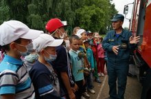 У того пожар возможен.Сегодня у детей в гостях побывали гости из МЧС. По плану лагеря для детей провели беседу о безопасном проведении летних каникул, что делать в грозу, как уберечься от огня, какие правила нужно знать и соблюдать, если случится пожар. После беседы провели учебно – тренировочную эвакуацию детей из здания гимназии. Сотрудники МЧС Нуриев Ф. и Латыпов И. показали из чего состоит пожарная машина, показали работу с брандспойтом, какими качествами должен обладать пожарный. Дети остались очень довольны встречей.