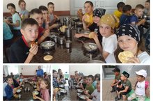 Бугенге кон лагерьда гадэттэге коннэн нык аерылып торды. Иртэнге аш Корбан Гаете коненэ багышлап кызарып, купереп торган тэмле коймаклар белэн чэй эчудэн башланып китте. Повар апалар коймакларны безгэ иртэнге биштэ эшкэ килеп пешергэннэр иде. Ихлас кунелдэн зур рэхмэтебезне эйтэбез аларга!