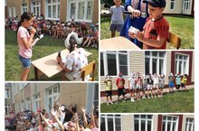 Сегодня в лагере помощником начальника отдела МВД России (по РЛС)- руководителем группы (ГРЛС) ОМВД России по Сабинскому району подполковником внутренней службы Сабировым Булатом Махмутовичем и Экспертом экспертно- криминалистической группы ОМВД России по Сабинскому району капитаном полиции Гариповым Марселем Нургалеевичем была проведена общероссийская акция "Зарядка со стражем порядка", приуроченной Всероссийскому дню физкультурника и 100-летию Всероссийского Общества "Динамо".