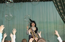Первая часть шоу состояло из трюков и фокусов с мыльными пузырями. Из цветов и огромных сердец. Дети попускали мыльные пузыри собственноручно.