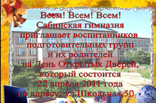 Сабинская гимназия приглашает воспитанников подготовительных групп и их родителей на День Открытых Дверей, который состоится