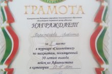 Поздравляем ученицу 8 класса Сабинской гимназии Харитонову Альбину занявшую 2 место в турнире «Сильнейших» по шахматам, посвящённый 30-летию вывода войск из Афганистана в категории 13-18 лет.