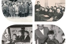 На фотоколлаже представлено как проходило обучение в старину в Сабинской средней школе.