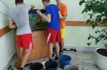 Сегодня в рамках акции «Твори добро» волонтеры гимназии ухаживали за живым уголком, чистили аквариум.