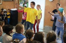 Сегодня в лагере День театра. После выступлений отрядов со спектаклями, для них было организовано мероприятие с национальными татарскими играми. После мероприятий ребята посетили экскурсией в краеведческий музей нашей гимназии. Пообедав, все отправились на стадион, где участвовали в спортивном часе. Соревнования, подвижные игры.