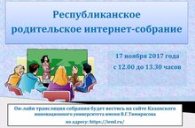 17 ноября 2017 года с 12.00 до 13.30 часов будет проведено Он-лайн трансляция родительского собрания на сайте Казанскогоинновационногоуниверситета имени В.Г.Тимирясова по адресу: https://ieml.ru/.