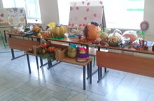 В школе сегодня прошла осенняя выставка. Учащиеся начальных классов организовали выставку своих поделок из овощей и фруктов. Молодцы!!!