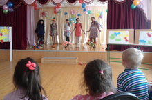 Ребята читали стихотворения, отвечали на вопросы викторины, рассказали о первом космонавте Ю.А.Гагарине, о современных спутниках; звучала песня "Знаете, каким он парнем был.."