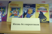 Закировой Н.М. в школьной библиотеке организована выставка книг,брошюр методической литературы на тему : "Жизнь без наркотиков".