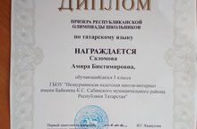 Призер республиканского тура олимпиады по татарскому языку 20.01.2020 Сегодня ученица 5 класса Саломова Амира была награждена дипломом призера республиканского этапа всероссийской олимпиады по татарскому языку. Преподаватель, подготовивший призера- Шарифуллина Кадрия Фанилевна. Молодцы!!! Желаем дальнейших успехов.