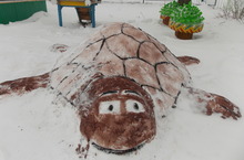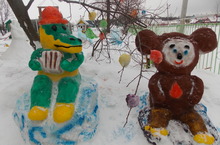 Сегодня дети помогли Снеговику выбраться из сугроба.