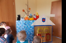 В конце недели в младшей разновозрастной группе «куклы» показывали сказку «Теремок». Детишки внимательно следили за развитием действий каждого персонажа. Они очень радовались, когда сказочные герои построили новый, красивый домик «Теремок». Попросили, чтобы куклы много- много раз показали им сказку.