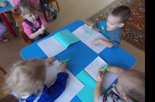 Наши малыши учатся правильно держать авторучку.