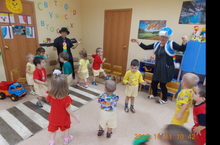 Ребятишки с зайчиком играли игру «Воробушки и автомобиль».