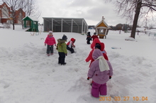 Всё ярче светит солнышко, снег быстро тает, а на крышах домов повисли сосульки- льдинки и от тёплого солнышка начинают таять- " кап-кап-кап"...