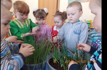 Дети в феврале месяца участвовали в посадке лука и овса, наблюдали за его ростом.
