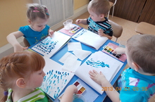 Сегодня дети младшей разновозрастной группы на рисовании передали образ весенней капели.