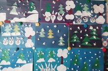 Дети старшей группы создали зимний пейзаж из бумаги. У них получились очень красивые картины зимнего леса. -