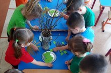 Сегодня малыши рассмотрели как устроены дерево и кустарник, чем они полезны. Узнали, что к ним нужно относиться бережно. Ведь они верные друзья и помощники человека. Без них не была бы возможна жизнь на Земле. В конце занятия дети одевали весенние "платья" кустарникам и деревьям.