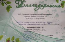 Благодарность за активное участие в конкурсе "Эковесна -2019" 27.06.2019