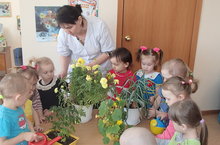 Ухаживаем за растениями на уголке природы. 15.04.2017