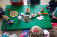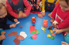 Сегодня малыши закрепили знания о домашних животных: отгадывали загадки, Построили дом, выбрали корм для них, помогли найти детенышей. В конце, превращаясь в домашних животных, играли игру с мячом "Назови детеныша".