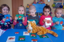 Сегодня на кружке "Умелые ручки" пришла кошка Мурка. Она, по поводу знакомства, попросила нарисовать ее портрет. Конечно же, малыши нарисовали. А нарисовали они ее не красками, а пластилином.