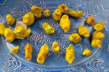 Утята купаются в лужице.