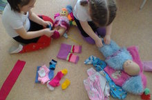 Наши куклы перепутали свою одежду, поэтому никак не могут одеться и выйти погулять. А ребятки им помогают, подбирают для большой куклы - длинные и большие одежды, для маленькой куклы – короткие и маленькие одежды.