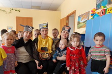 В конце праздника дети подарили зимующим птицам "Торт для птиц" и сфотографировались на память.