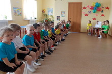 Малыши для жюри спели песню " Бравые солдаты". Разделившись на команды "Лётчики" и "Моряки" соревновались играя разные спортивные игры.