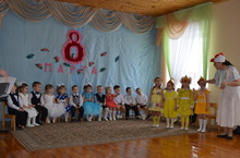 Көннең яктылыгы кояшта, күкнең матурлыгы йолдызларда, җир йөзенең гүзәллеге хатын- кызларда. Без дә гүзәл затларыбызны бүген, 7 март көнне, бәйрәм залына җыйдык. Беренче булып кечкенәләр төркеме , ә аннары зур төркем балалары кадерле кунакларыбызны бәйрәм белән котлап чыгыш ясадылар.