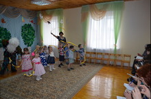 Детишки играли с гостями игру "Летает - не летает", "Кошка -воробей", "Синица - собачка", танцевали под весёлую музыку.