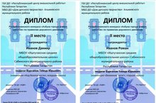 Воспитанники кружка «Робототехника» Иванов Данияр (4 кл.) и Иванов Роман (6 кл.) приняли участие в Республиканском конкурсе «Азбука города в мире роботов» по правилам дорожного движения. Мальчики заняли 2 место и награждены Дипломом. Руководитель Бурганов Т. Ю.
