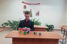 Сегодня ученик 11 класса Сабиров Айдар показал для учащихся 4-11 классов мастер-класс по сборке кубика-рубика. У него имеется комплект разных кубиков-рубиков. И он выучил технологию сборки каждого кубика. Детям очень понравился мастер-класс. Каждый ученик попытался собрать их.