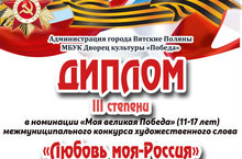 Ученики нашей школы приняли активное участие в межмуниципальном конкурсе художественного слова "Любовь моя - Россия", посвящённого 75-й годовщине Победы в Великой Отечественной войне. Шарипова Карина (4 кл.) награждена Дипломом за участие в номинации "Моя великая Победа", а Казанков Илья (7 кл.) - Дипломом III степени этой же номинации. Руководитель: Танасева М. А.