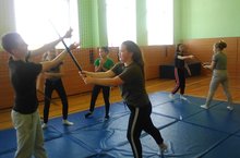 В рамках проведения декадника «Экстремизму – нет!» учитель ОБЖ Гатиятов Р. Р. в 9 классе провёл урок на тему «Самооборона». Урок состоял из теоретической и практической части.