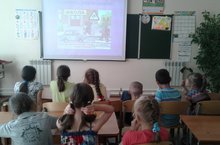 В лагере "Лесная поляна" прошло занимательное мероприятие по правилам дорожного движения. Маленькие пешеходы рассматривали разные ситуации на дорогах, помогли непутевому мальчишке пройти из видеорассказа перейти дорогу.
