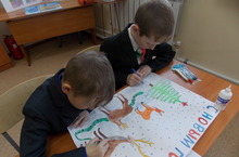 В начальных классах обьявлен конкурс новогодней стенгазеты.Каждый класс с желанием оформляет свою газету.