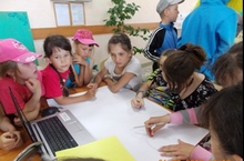 Сегодня первый день пришкольного лагеря "Лесная поляна". Дети собрались в школе в 8 утра. Состоялась организационная линейка, потом ребята делали зарядку, позавтракали. В течение дня проводились различные мероприятия: конкурс рисунков на асфальте, подготовка к торжественному открытию лагеря.
