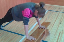 Девочки 5-11 классов отжимались, кто больше сделает. Команда девочек 8 класса одержала победу.