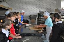 Работники пекарни были очень радушны. Рассказали нам тонкости технологического процесса изготовления хлебобулочных изделий, какие начинки можно делать для пирога, как украшать торты, какие приспособления используются в пекарной промышленности.