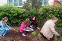 Учащиеся заботливо относятся к территории школы, сами пропалывают сорняки, поливают гряды, ухаживают за клумбами, за овощными культурами