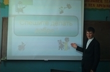 23 апреля 2012 года классный руководитель 7 класса, Дружкова Миляуша Галинуровна, провела классный час на тему «Спешите делать добро».