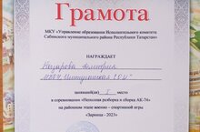 Отряд "Юнармия" (рук. Гатиятов Р.Р.) принял участие на районном этапе военно - спортивной игры "Зарница - 2023". Ученик 8 класса Назаров Дмитрий занял 1 место в соревновании "Неполная разборка и сборка АК-74". Поздравляем!