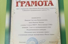 - вторая тройка (участники: Хабриева Диляфруз – 6 кл., Денисов Никита – 8 кл., победитель: Игнатьева Анжелика – 9 кл.);